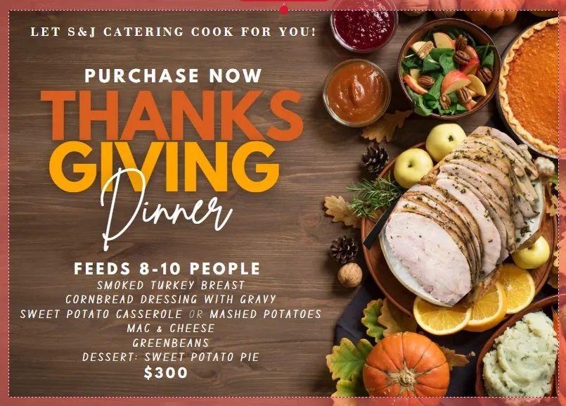 Order your dinner today. Our Thanksgiving Dinner feeds up to 15 family members. For individual dish prices please see below: